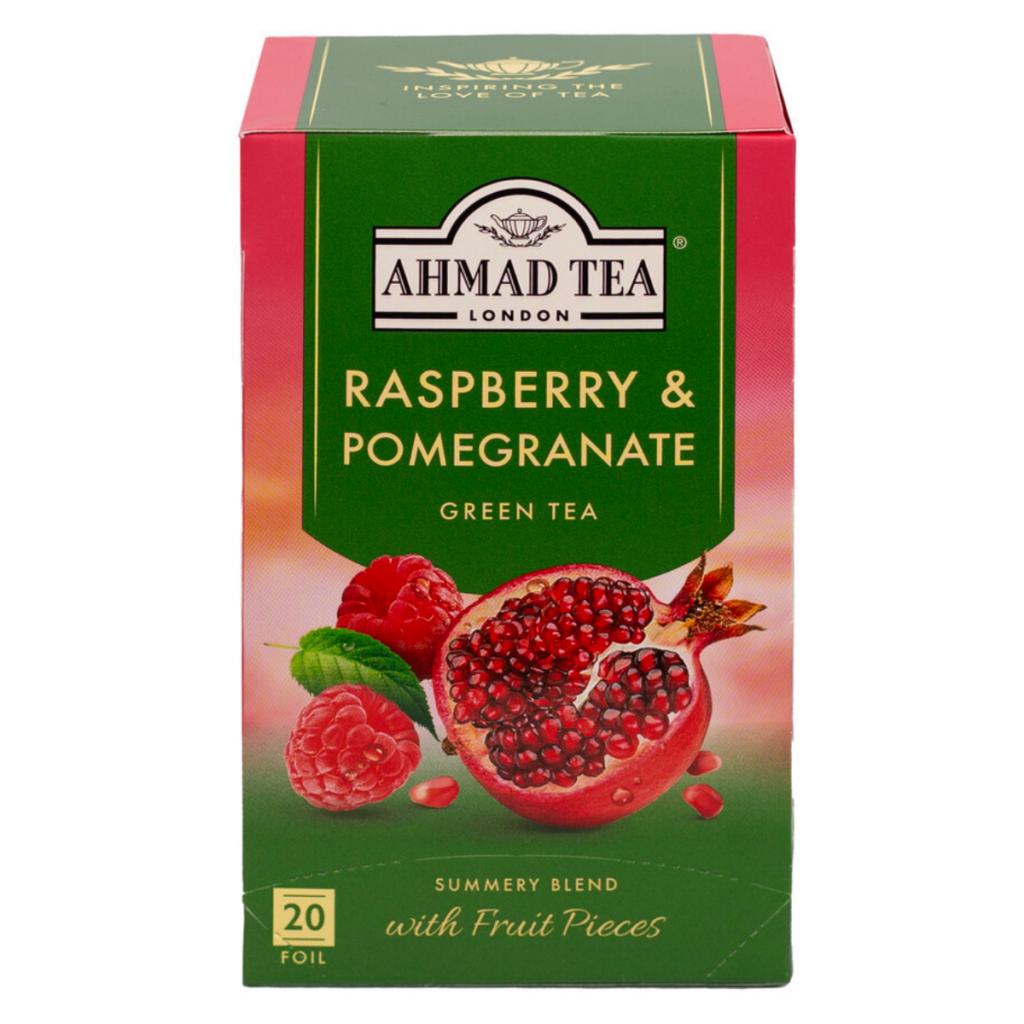 20 teabags (foil). Looking for a deliciously fruity brew? Our Raspberry & Pomegranate Green Tea is just the ticket. Blending grassy Chinese green tea with the summery sweetness of raspberry and pomegranate, it makes for a mouth-wateringly fruity infusion.